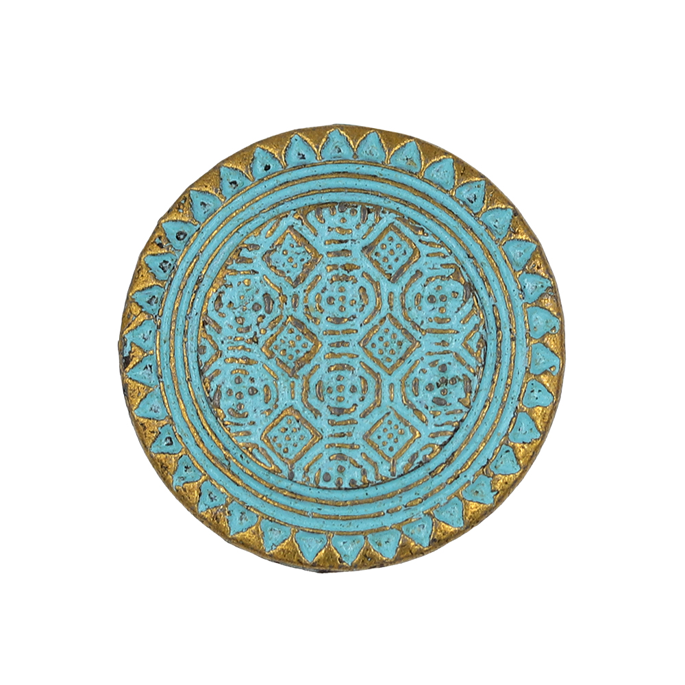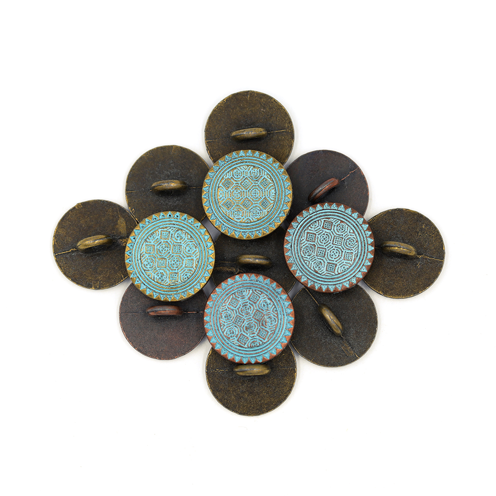 Product: Sullivans 15mm Round Metal Shank Button With Filigree Pattern - Blue/copper - 21 In A Tube