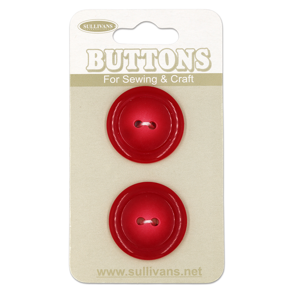 Product: Sullivans Buttons Card - 22mm Ruby Red Buttons With Two Holes - 2pcs