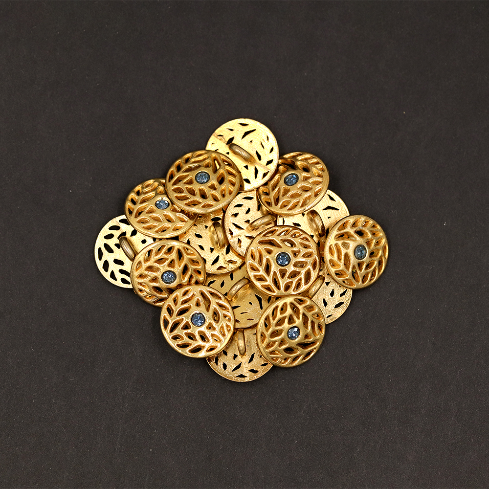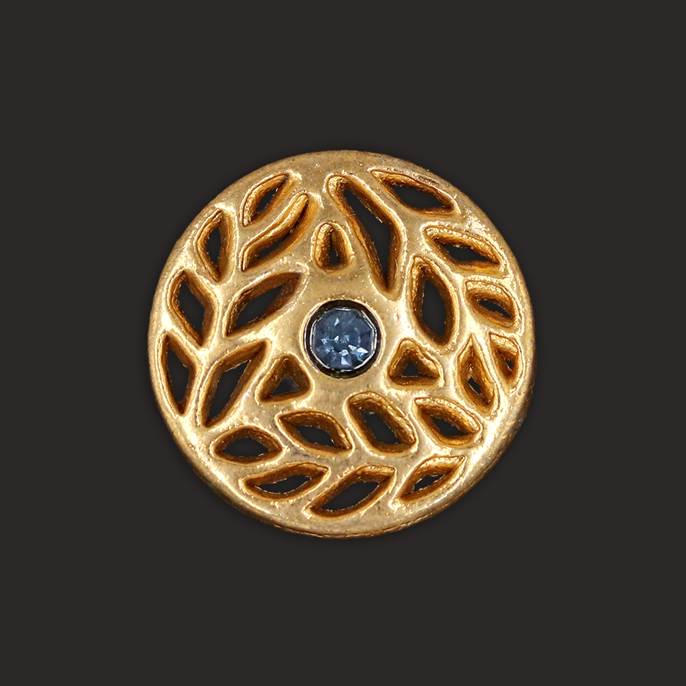 Sullivans 15mm Round Metal Button With Gold Filigree Pattern & Royal Stone In Middle - 18 In A Tube