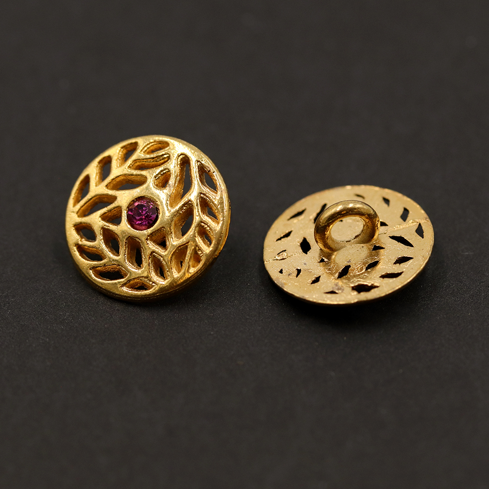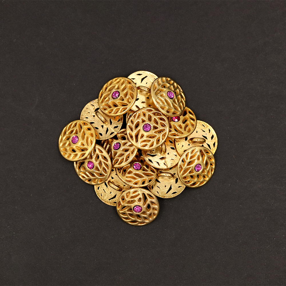 Sullivans 15mm Round Metal Button With Gold Filigree Pattern & Pink Stone In Middle - 18 In A Tube