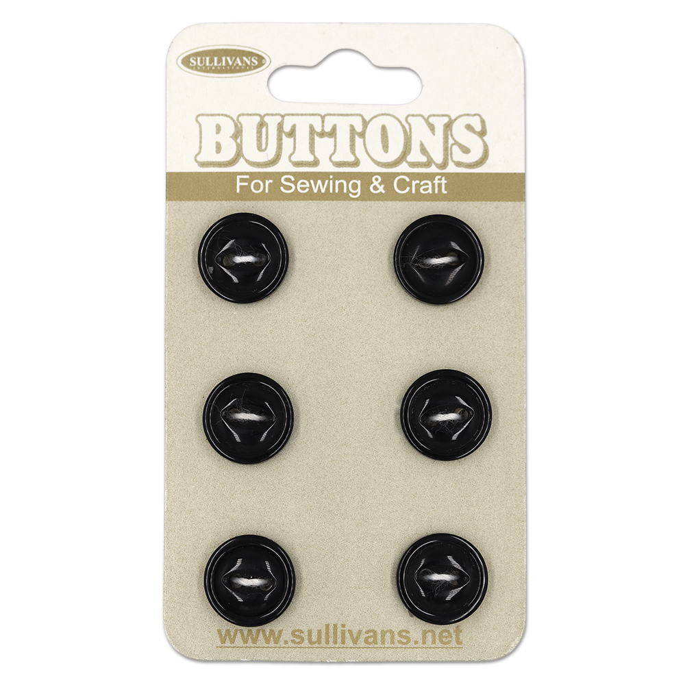 Product: Sullivans Buttons Card - 11mm Black Buttons With Two Holes - 6pcs