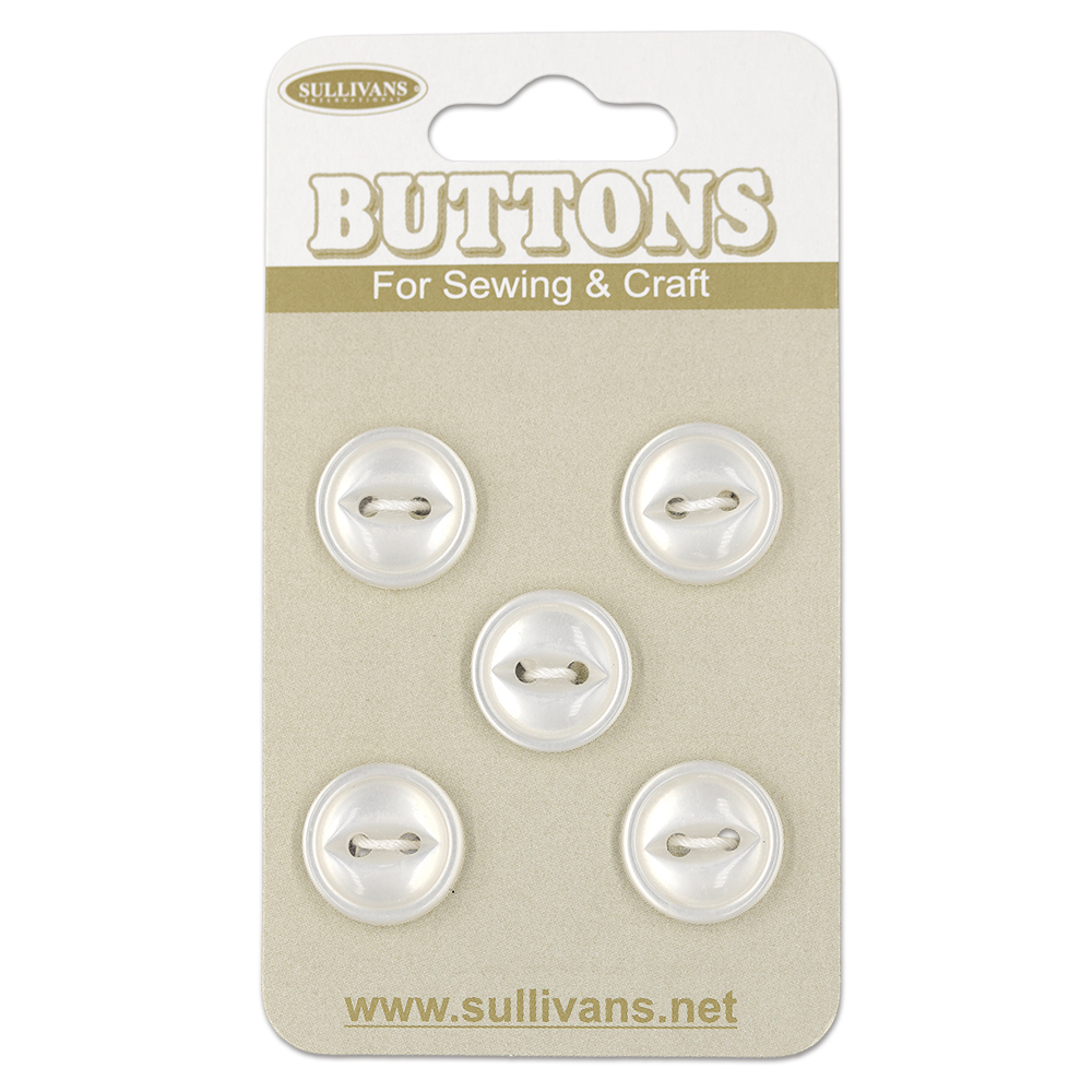 Sullivans Buttons Card - 11mm Frosted White Buttons With Two Holes - 5pcs