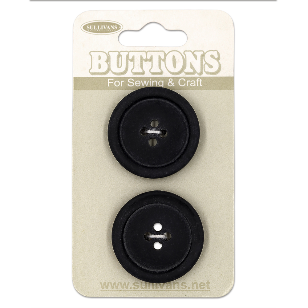 Sullivans Buttons Card - 25mm Black Buttons With Four Holes - 2pcs