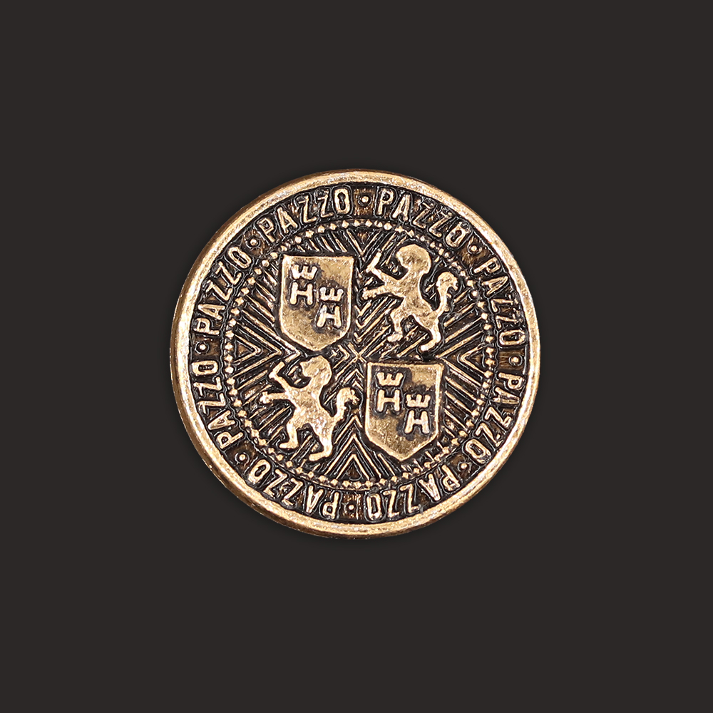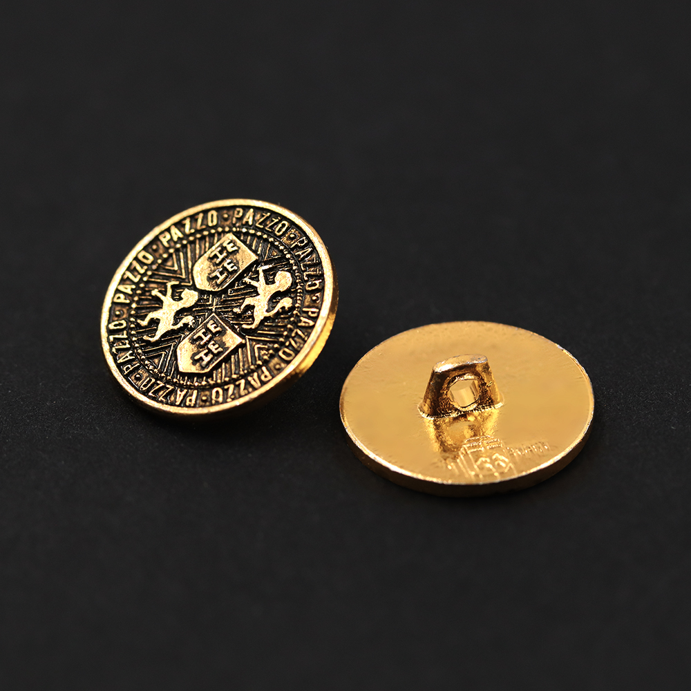 Product: Sullivans 15mm Round Metal Shank Button With Emblems - Old Gold - 31 In A Tube