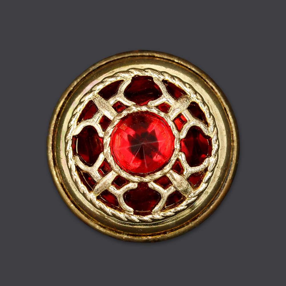 Sullivans 43mm One Terrific Button - Round Red Encased With Gold Detailing - 1 Pc