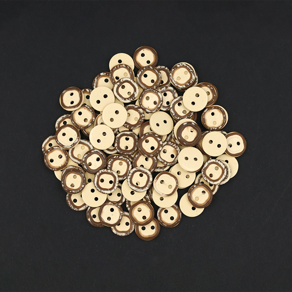 Sullivans 12mm Rounded Edge Square Plastic Button - Cream With Brown Border - Bag Of 100