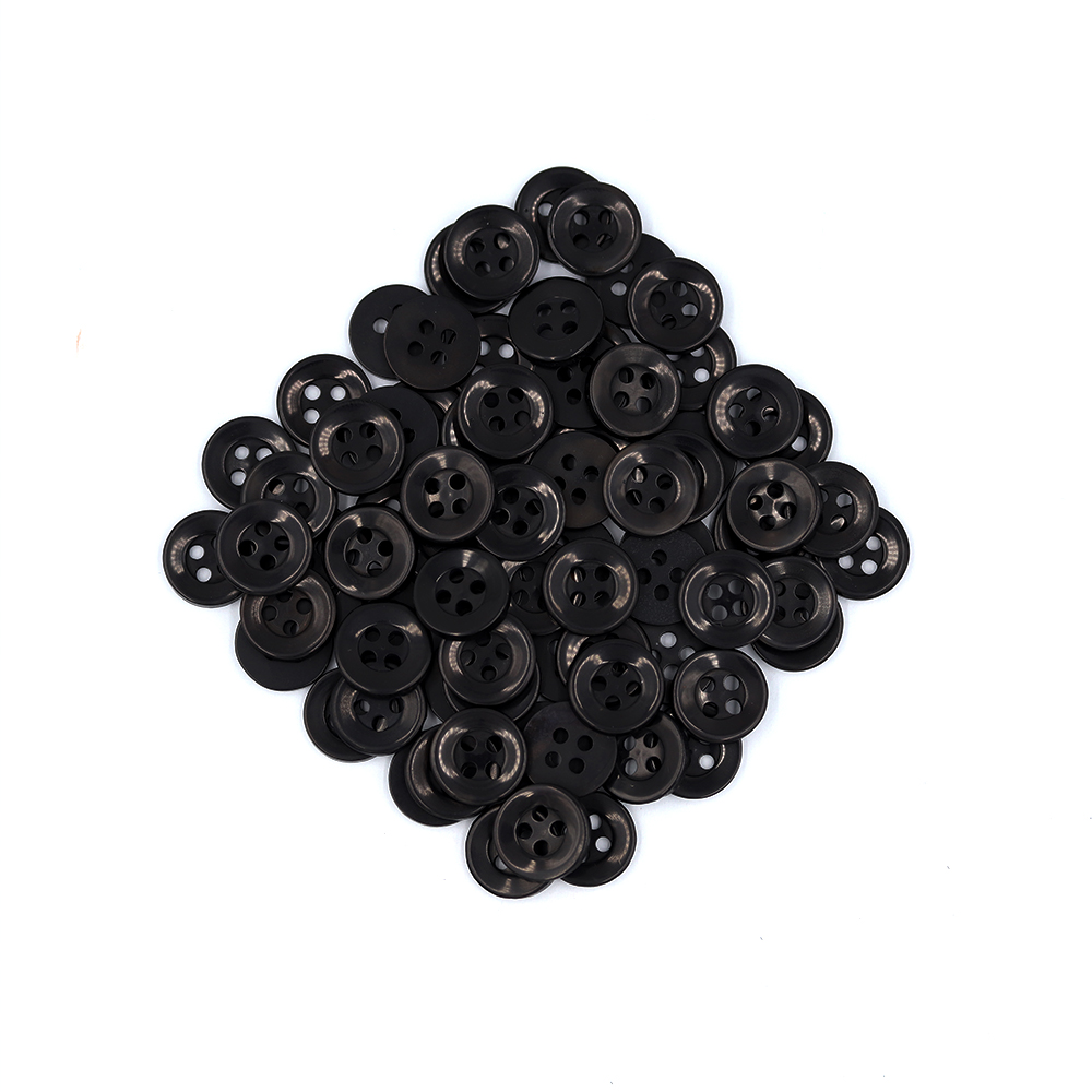 • 22498 Sullivans 12mm Round Plastic Button 4 Hole - Black - 216 In A Tube