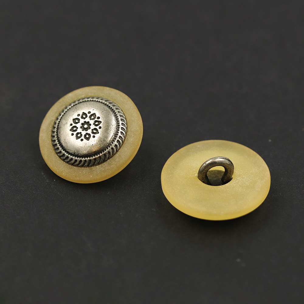 • 23404 Sullivans 21mm Round Plastic Shank Button - Detailed Pattern - Silver - 21 In A Tube