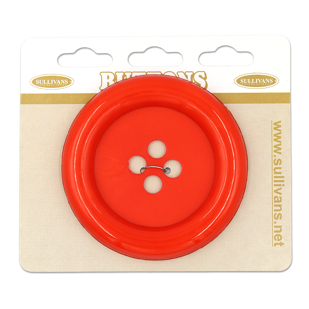 Sullivans Buttons Card - 63mm Round Button With Four Holes - Orange - 1pc