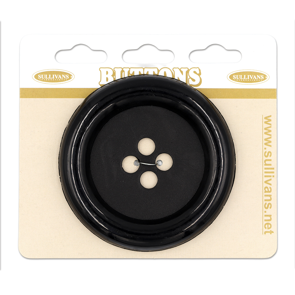 Sullivans Buttons Card - 63mm Round Button With Four Holes - Black - 1pc