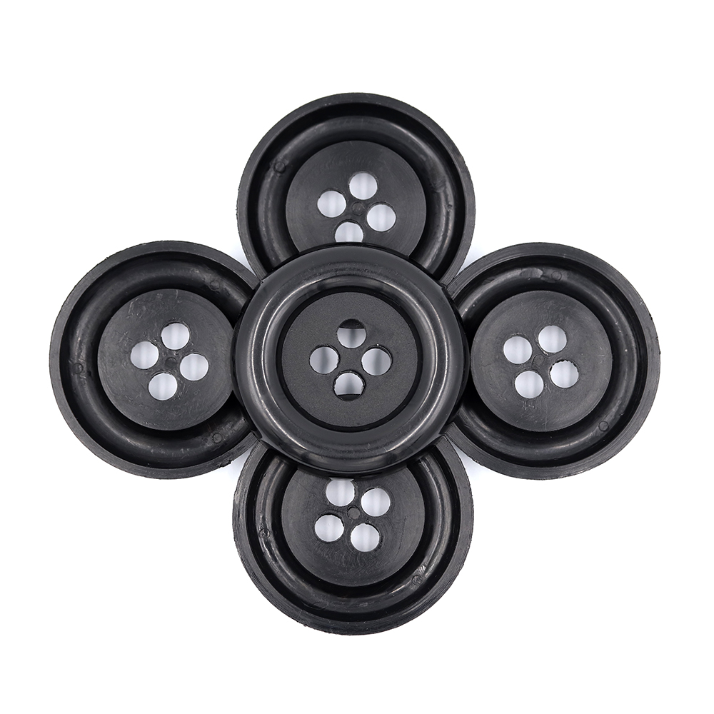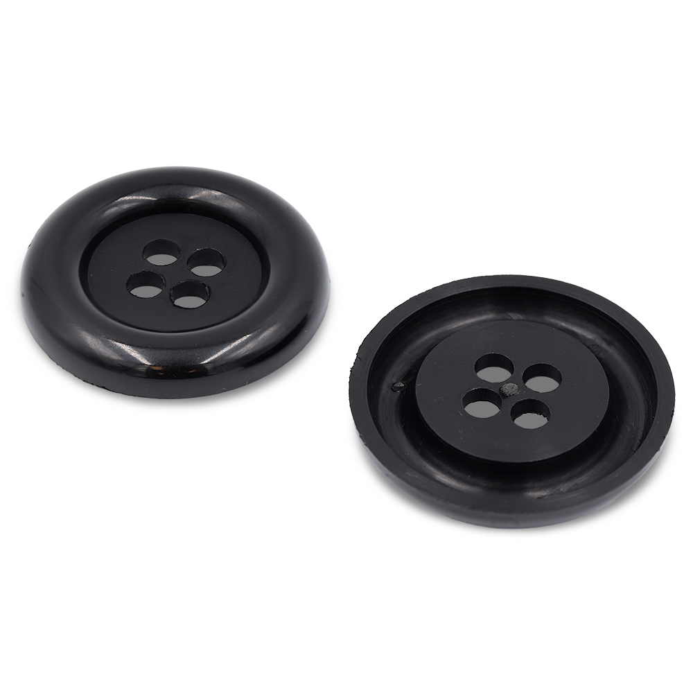 Sullivans 49mm Round Plastic Button With Four Holes - Black - 15 In A Tube