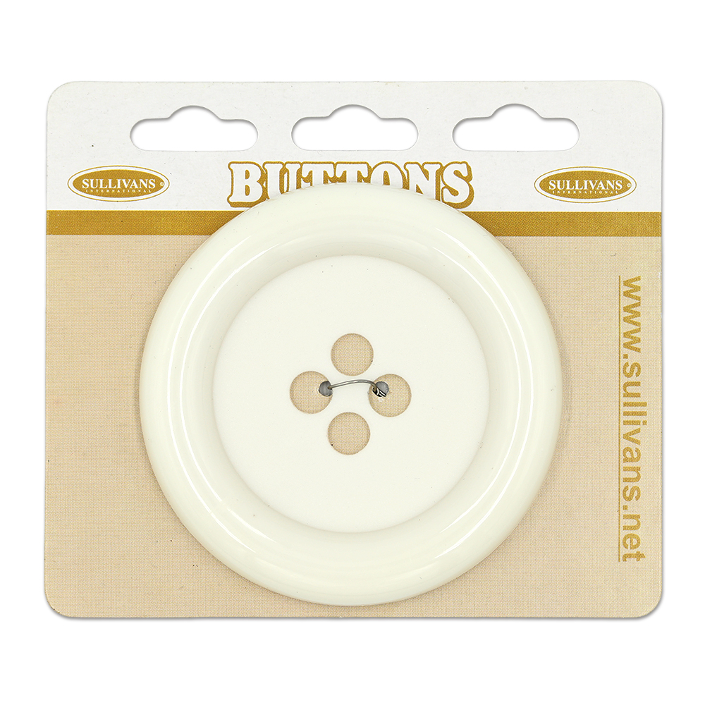 Sullivans Buttons Card - 63mm Round Button With Four Holes - White - 1pc