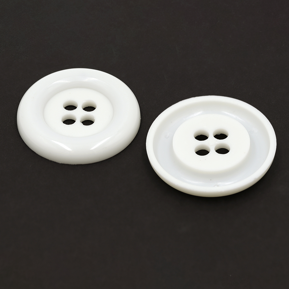Sullivans 49mm Round Plastic Button With Four Holes - White - 15 In A Tube