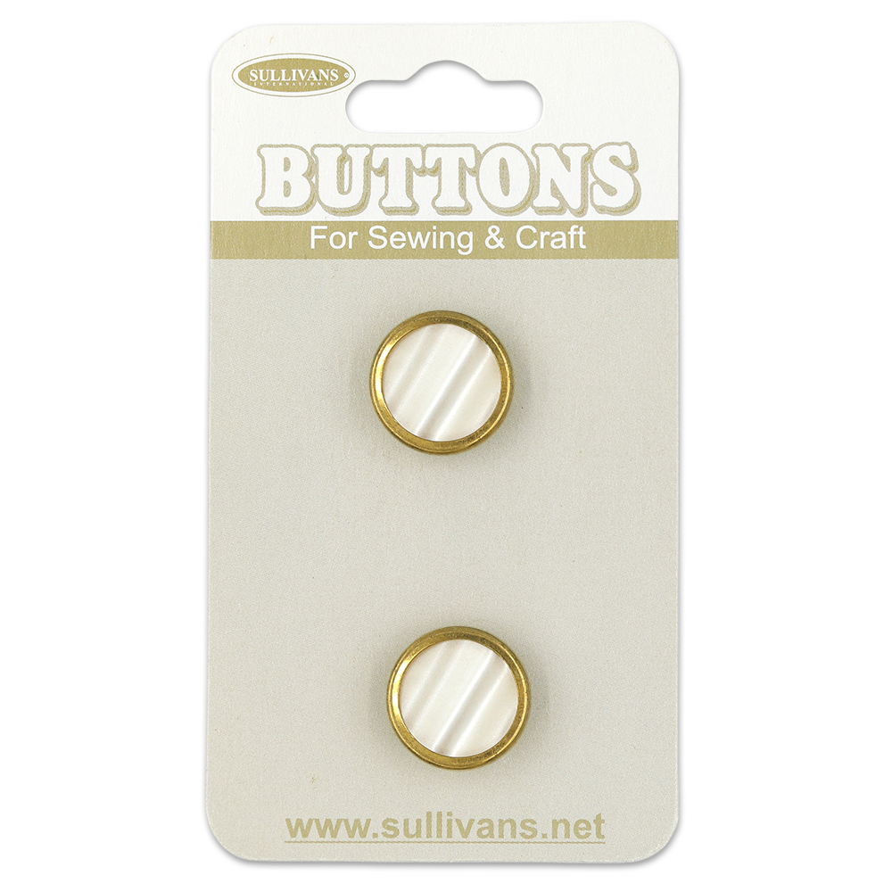 Sullivans Buttons Card - 13mm Gold Edge Metal Buttons With Frosted White Centre - 2pcs