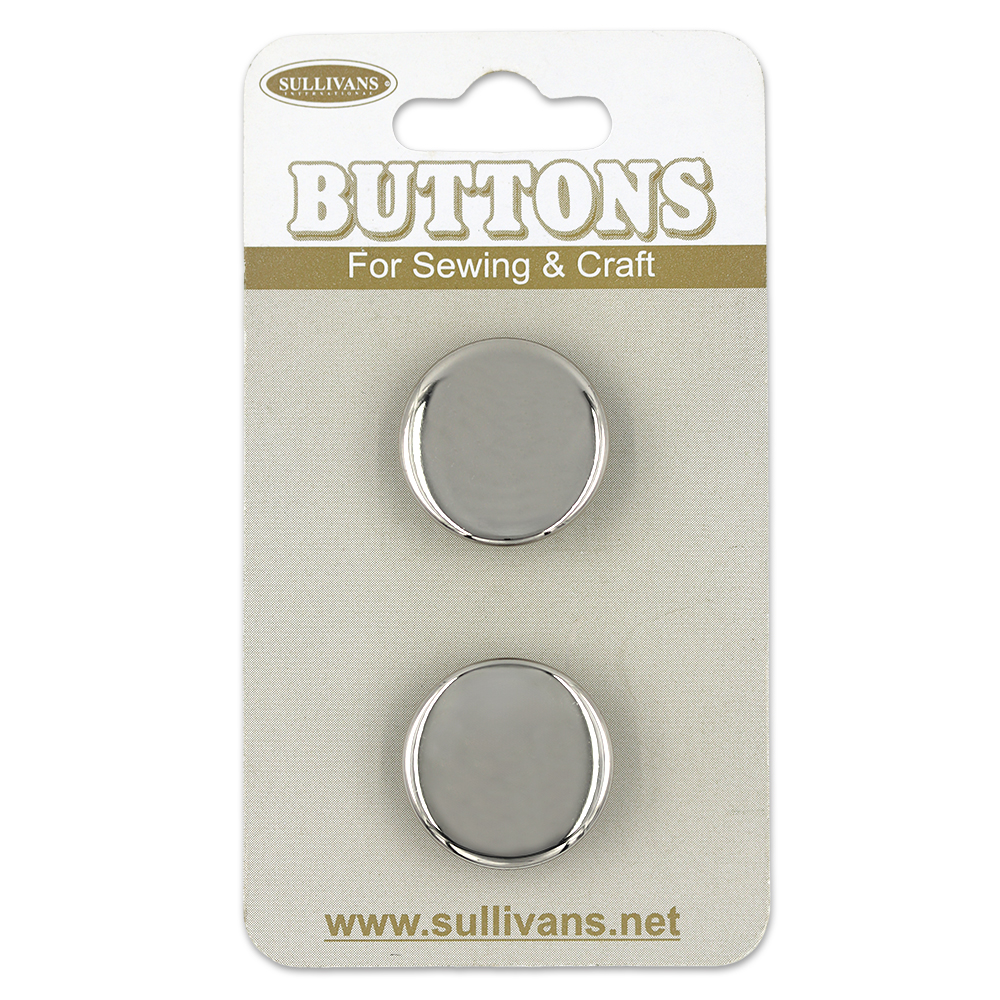 Sullivans Buttons Card - 17mm Silver Metal Shank Buttons - 2pcs