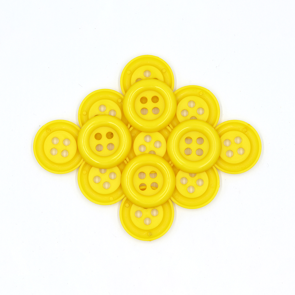 Product: Sullivans 30mm Round Plastic Button With Four Holes - Yellow - 30 In A Tube