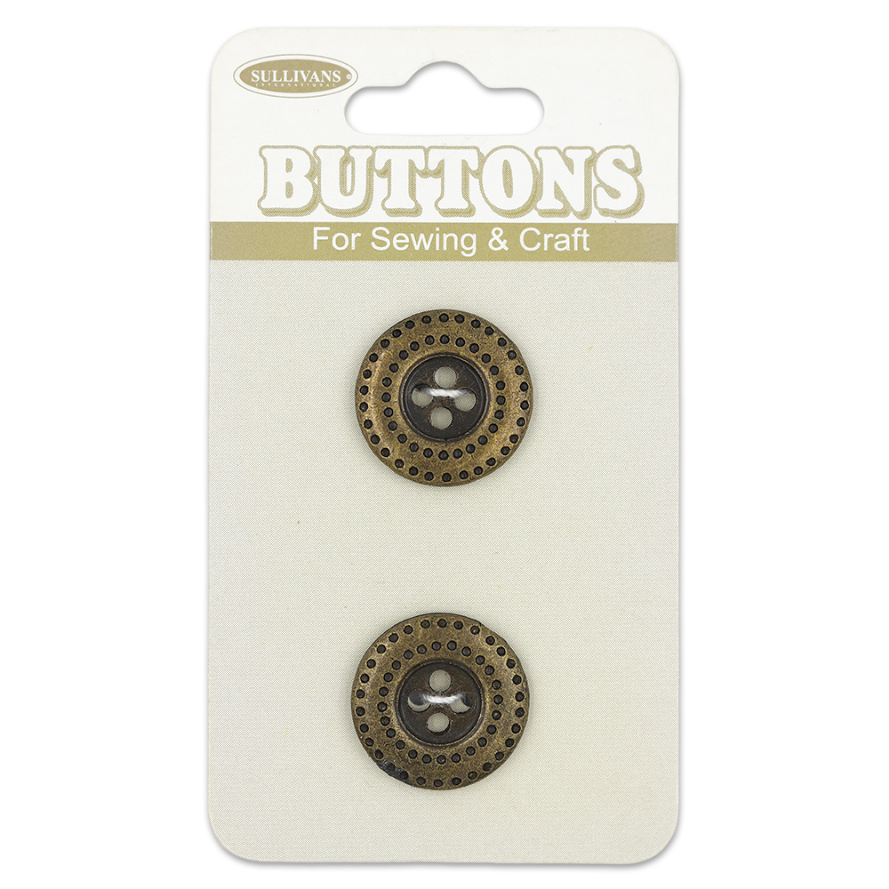 Sullivans Buttons Card - 17mm Bronze Metal Buttons With Four Holes - 2pcs