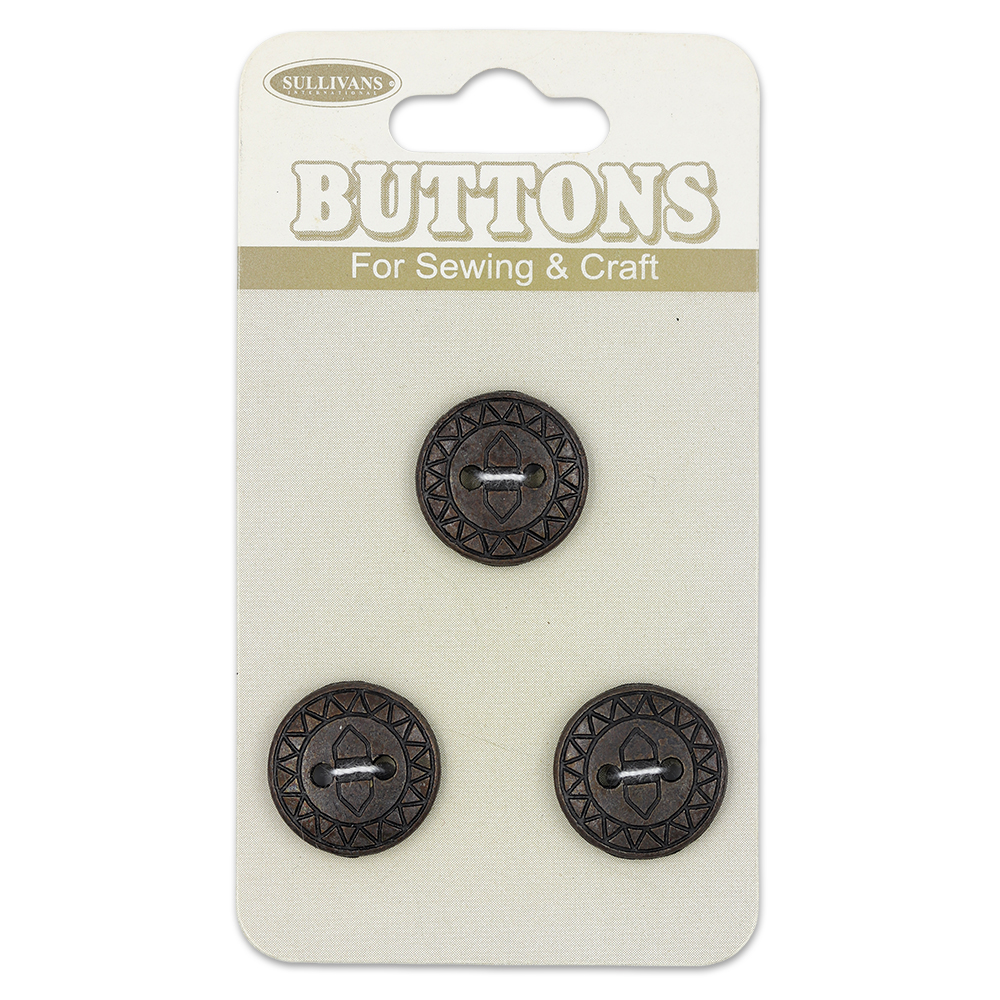 • 20647 Sullivans Buttons Card - 15mm Bronze Metal Buttons With Four Holes - 3pcs