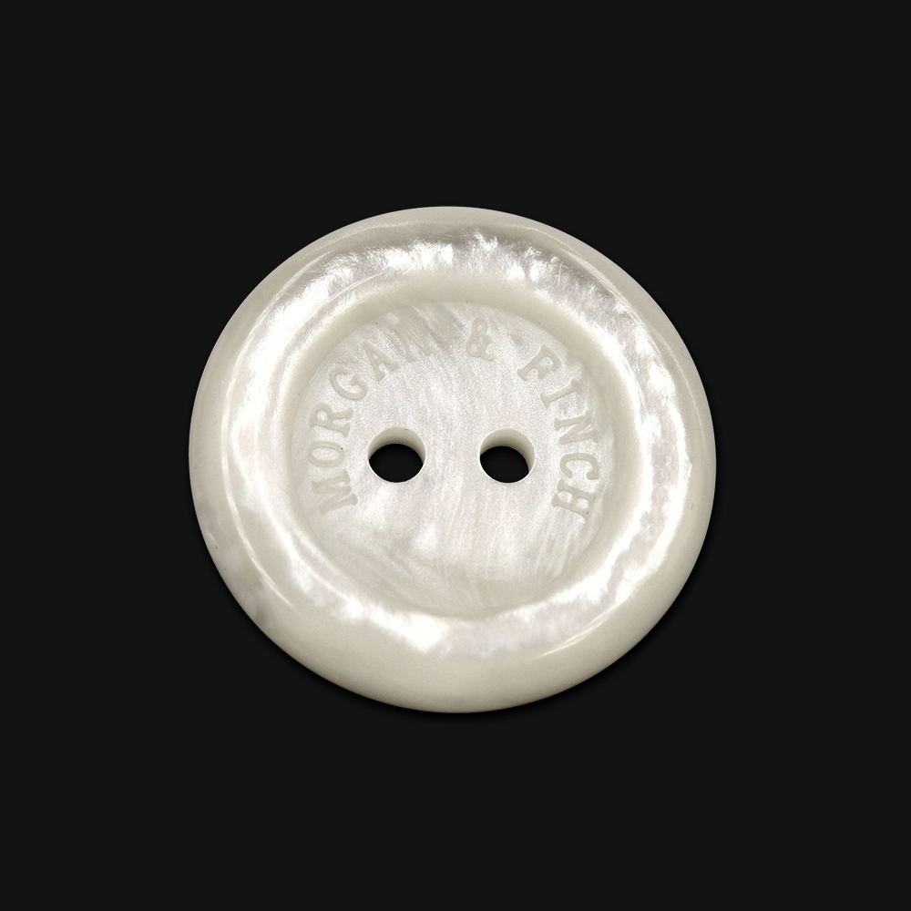Product: Sullivans 20mm Round Plastic Button Inscribed Morgam & Finch - Frosted White - 30 In A Tube