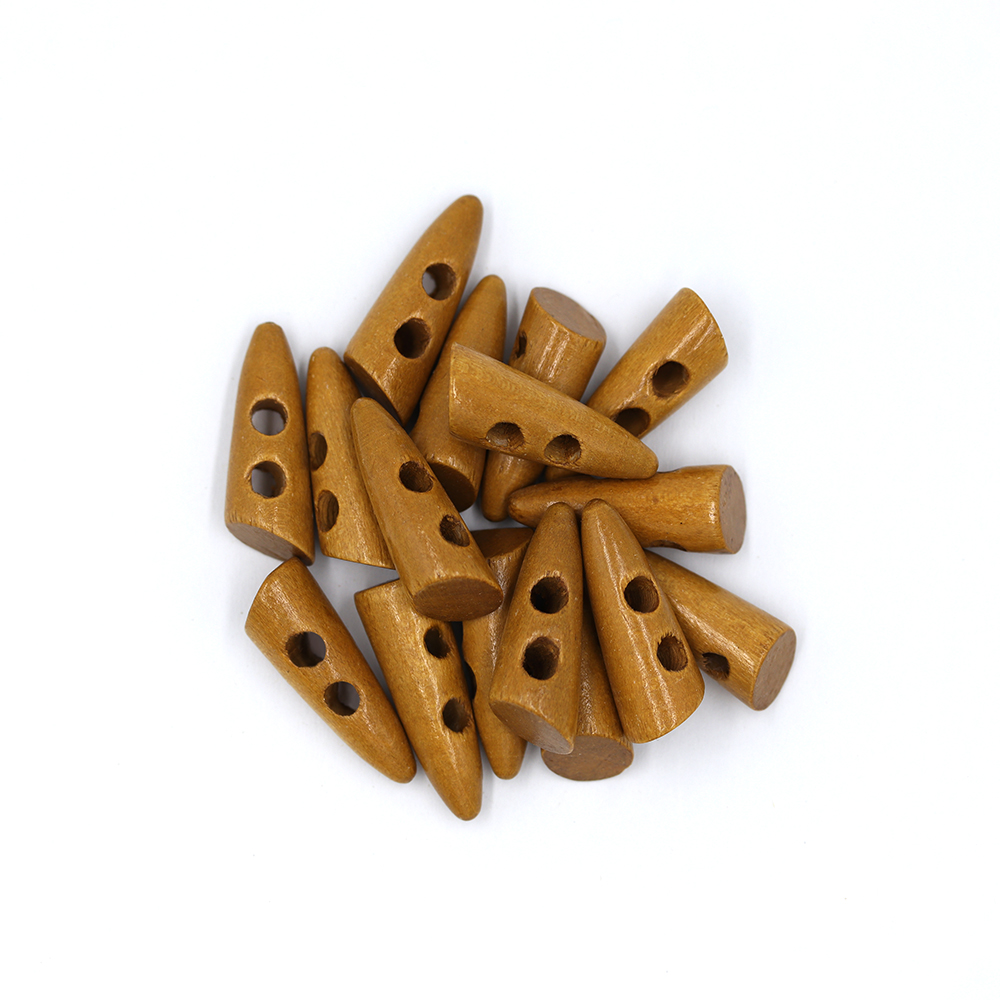Sullivans 30mm Wooden Toogle Button With Two Holes With Point - Tan Wood - 20 In A Tube