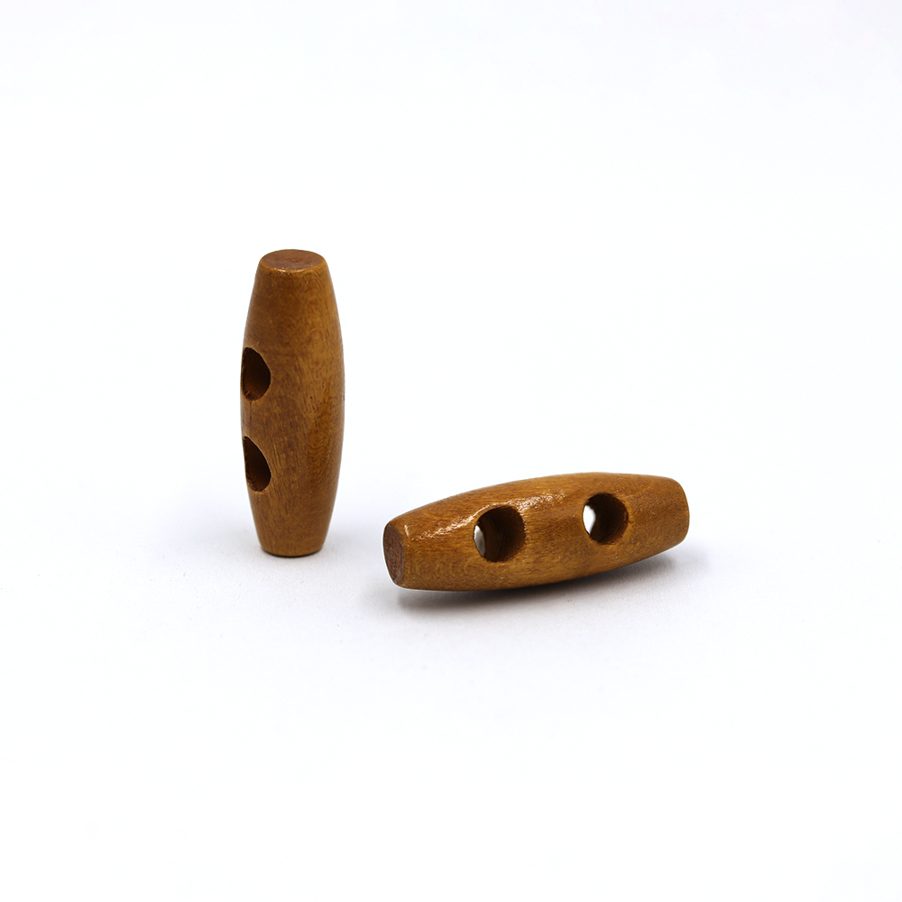 • 20689 Sullivans 30mm Wooden Toogle Button With Two Holes With Point - Tan Wood - 20 In A Tube