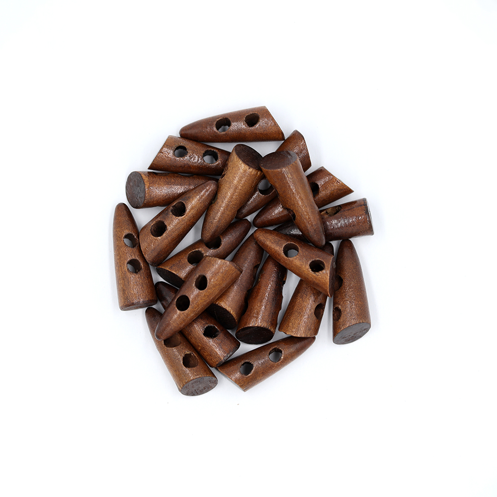 Sullivans 30mm Wooden Toogle Button With Two Holes With Point - Dark Wood - 20 In A Tube