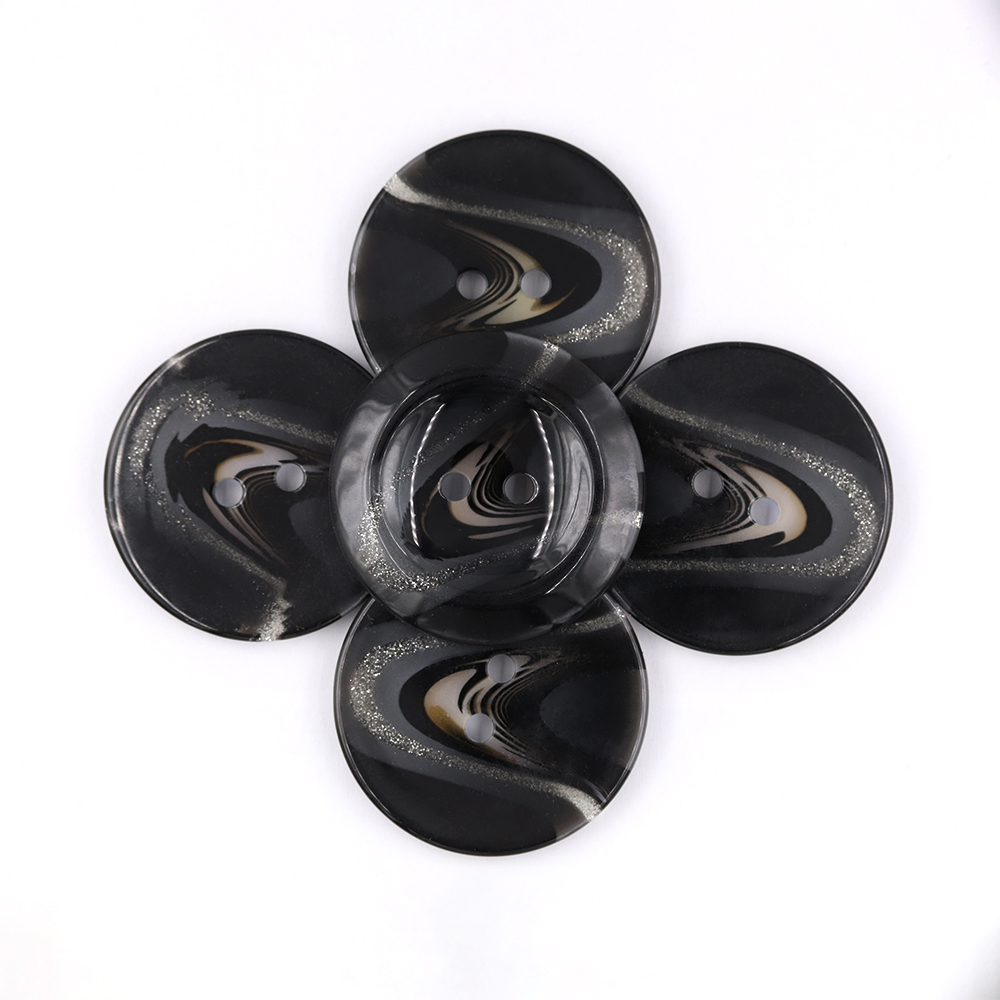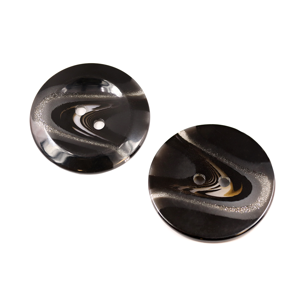 Sullivans 50mm Round Plastic Button With Two Holes -pattern Through Middle - Black - 32 In A Tube