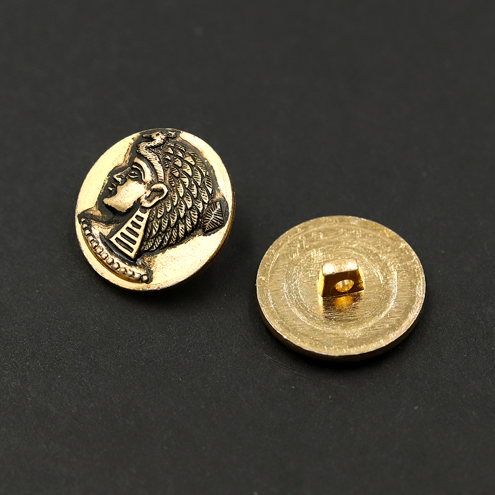 Sullivans 19mm Round Metal Shank Button With Egyptian Pharoah - Gold - 22 In A Tube