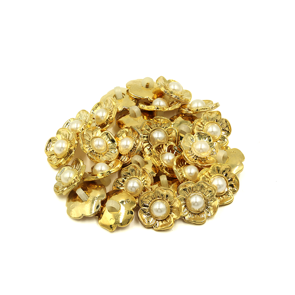 Product: Sullivans 18mm Flower Plastic Shank Button - Pearl Centre With Gold Petals - 31 In A Tube