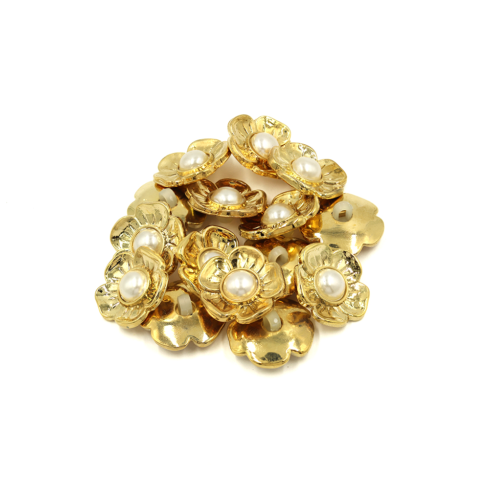 Sullivans 22mm Flower Plastic Shank Button - Pearl Centre With Gold Petals - 25 In A Tube