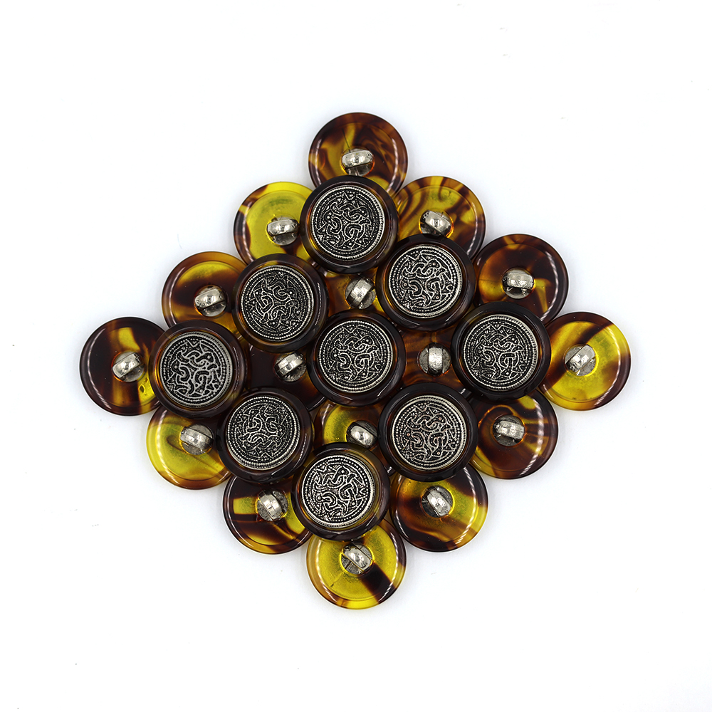 Product: Sullivans 16mm Round Metal Shank Button With Centre Detail And Amber Border - Silver - 29 In A Tube