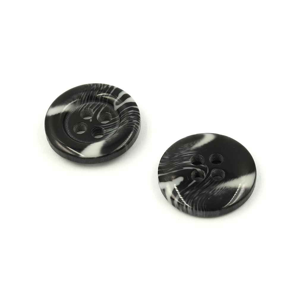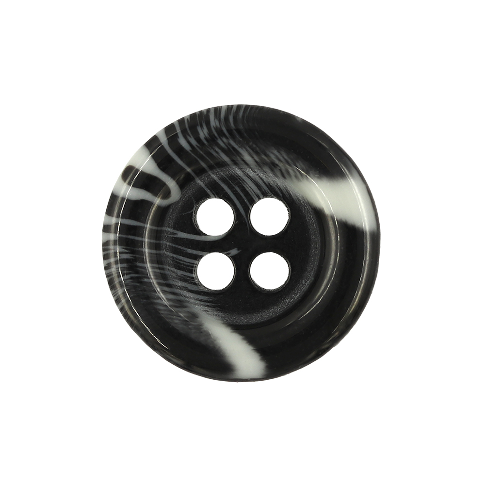 • 21140 Sullivans 15mm Round Plastic Button With Four Holes  - Raised Rim - Dark Grey Two Tone - 72 In A Tub