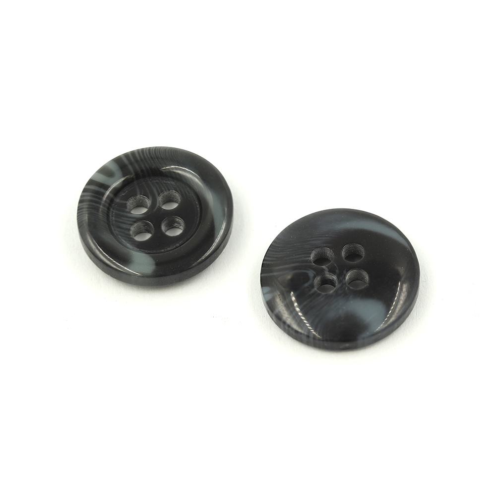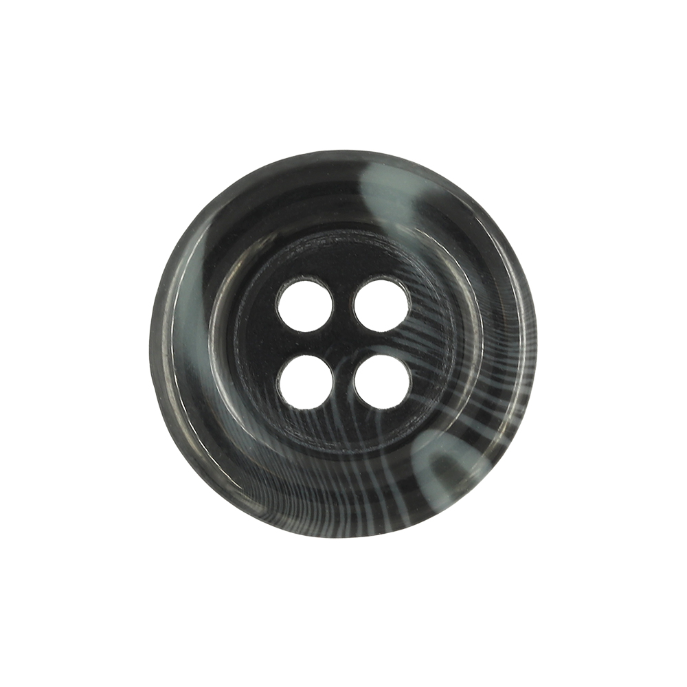 • 21154 Sullivans 15mm Round Plastic Button With Four Holes  - Raised Rim - Matt Black Two Tone - 72 In A Tu