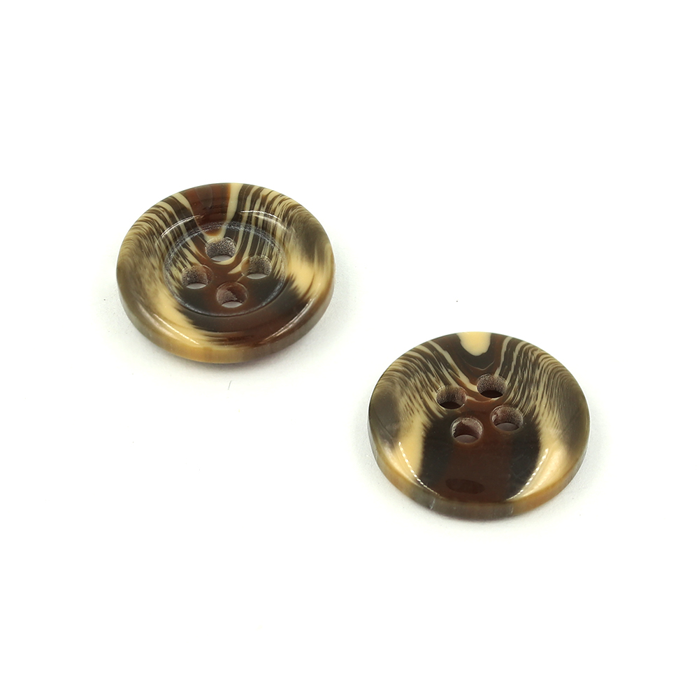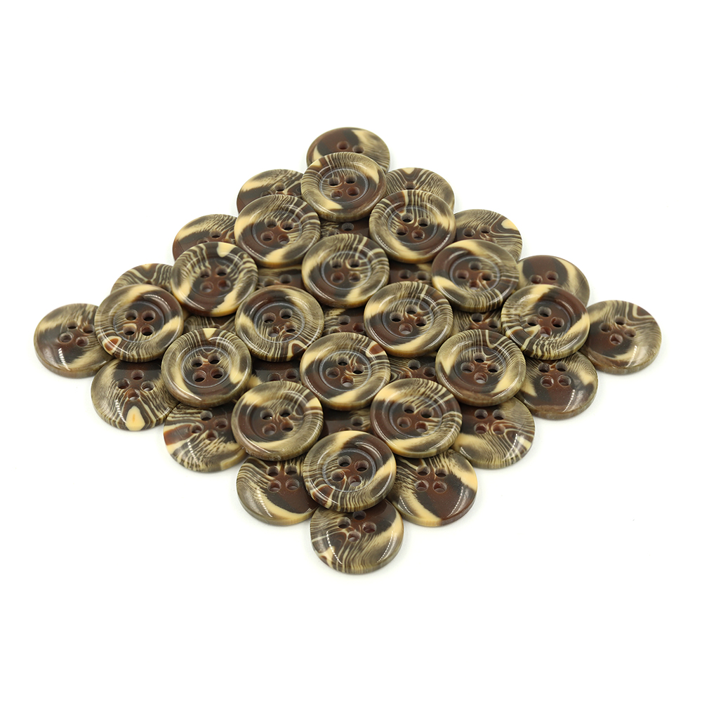 • 21160 Sullivans 15mm Round Plastic Button With Four Holes  - Raised Rim - Matt Brown Two Tone - 72 In A Tu