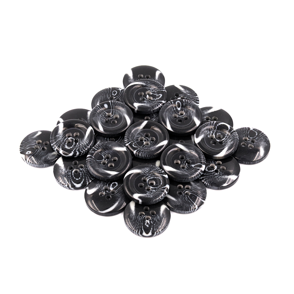 • 21164 Sullivans 20mm Round Plastic Button With Four Holes  - Raised Rim - Matt Dark Grey Two Tone - 42 In