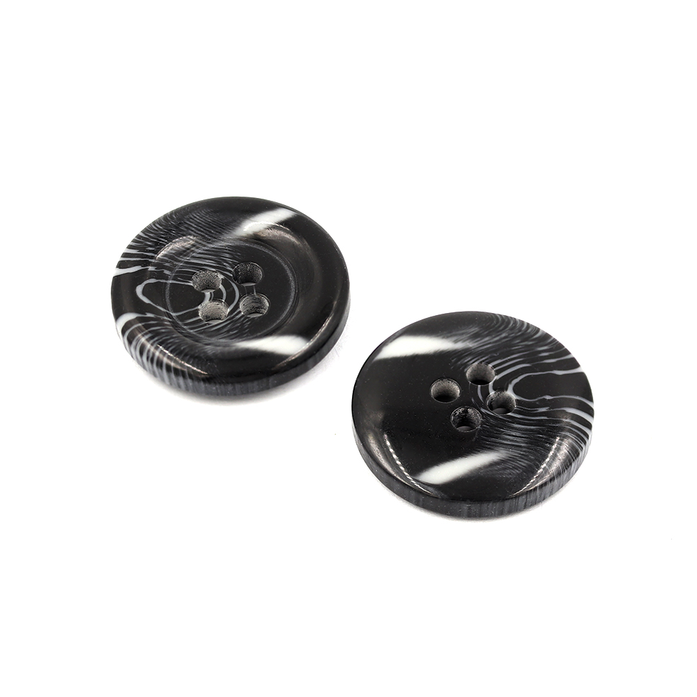 • 21162 Sullivans 20mm Round Plastic Button With Four Holes  - Raised Rim - Matt Black Two Tone - 42 In A Tu