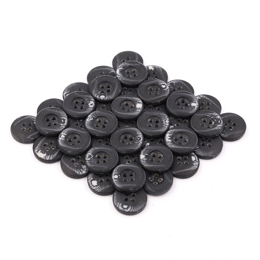 Sullivans 15mm Round Plastic Button With Four Holes - Raised Rim - Matt Black Two Tone - 72 In A Tu