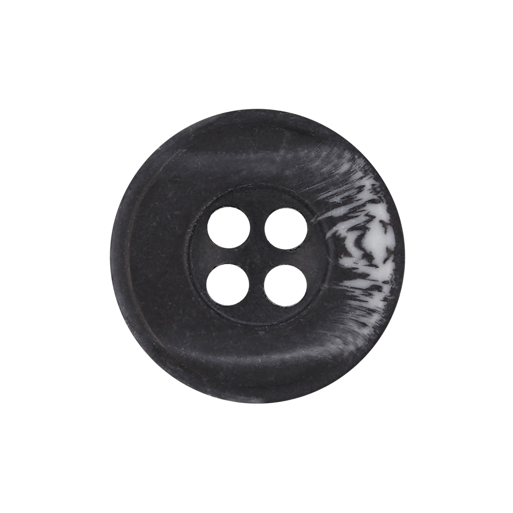 • 21156 Sullivans 15mm Round Plastic Button With Four Holes  - Raised Rim - Matt Dark Grey Two Tone - 72 In
