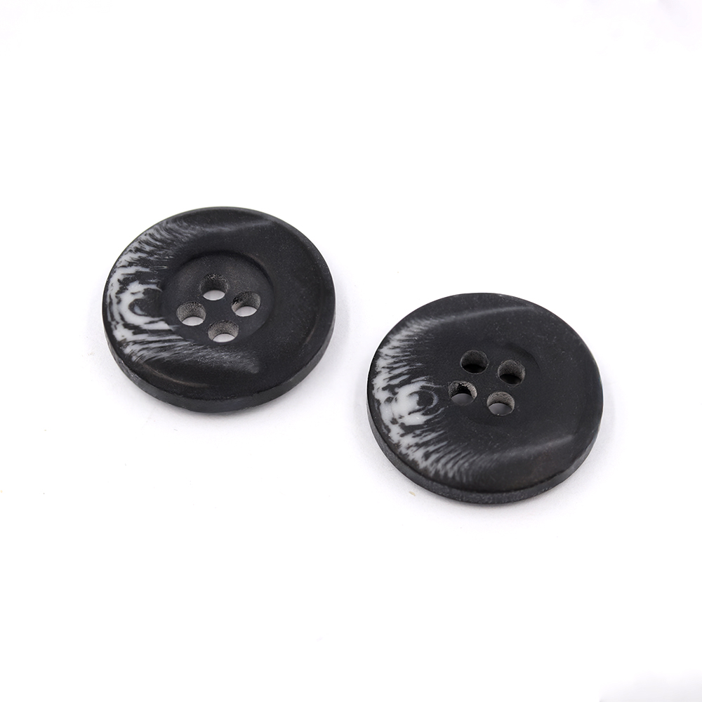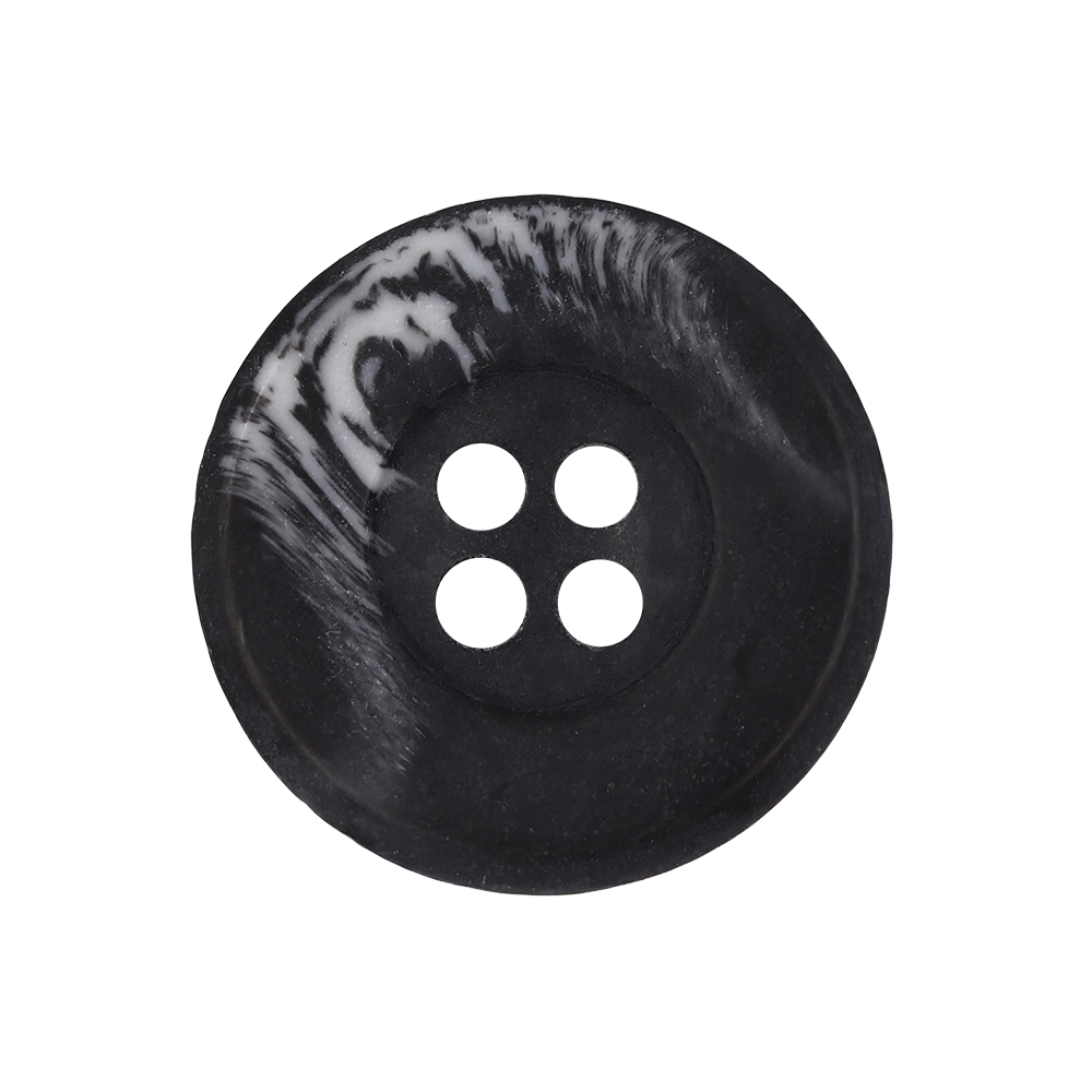 Sullivans 20mm Round Plastic Button With Four Holes - Raised Rim - Matt Black Two Tone - 42 In A Tu