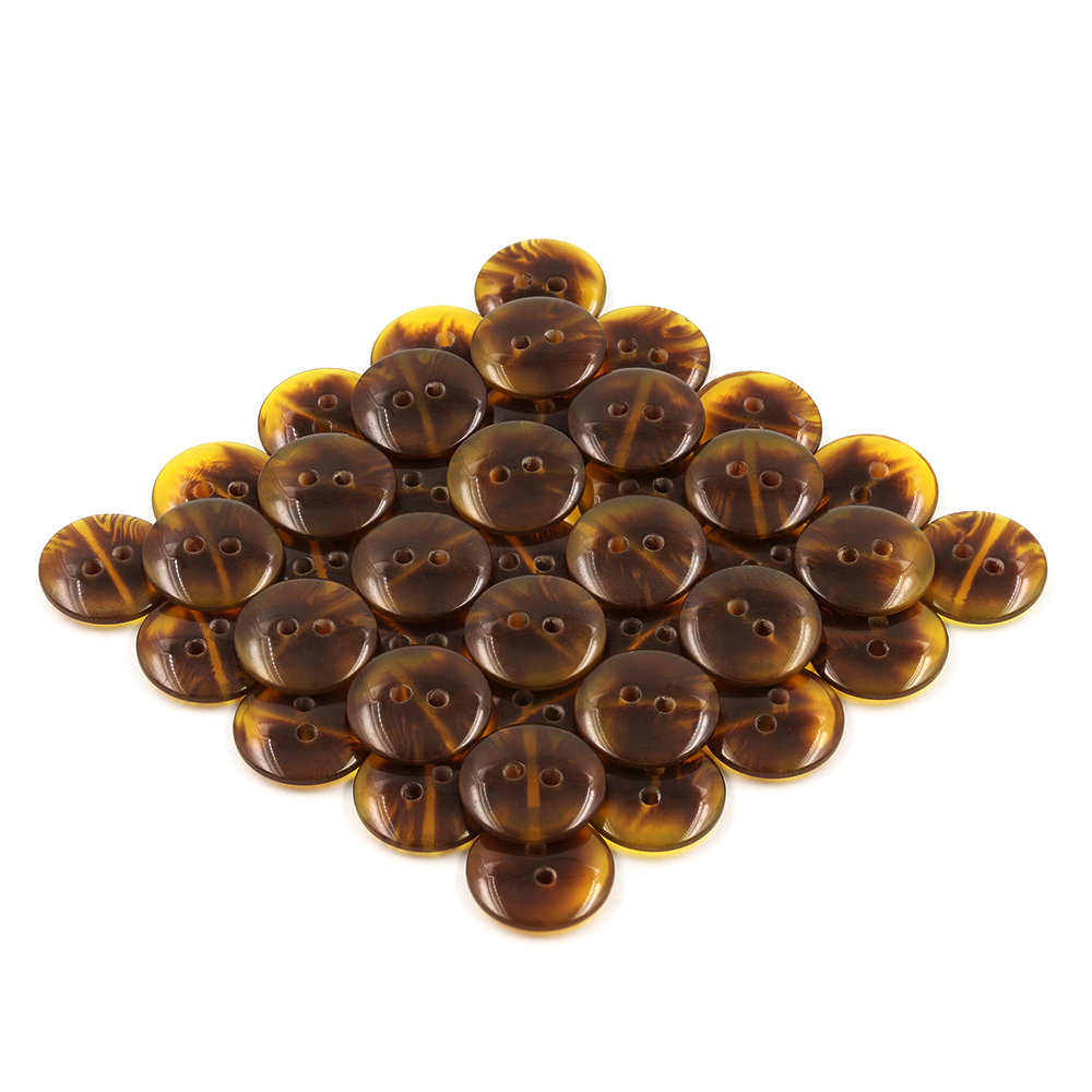 Product: Sullivans 15mm Round Plastic Button With Two Holes - Clear Amber Variegated Pattern - 70 In A Tube