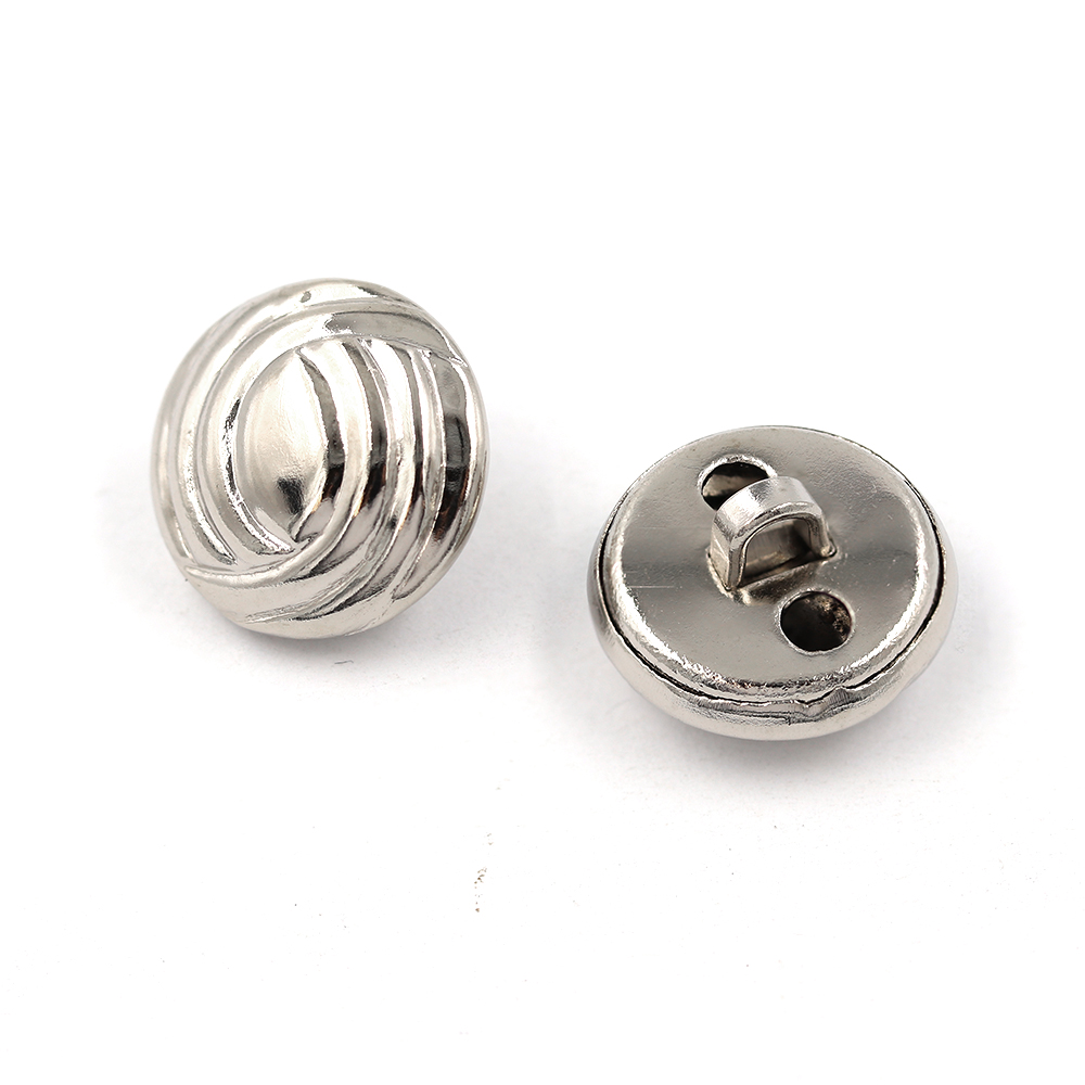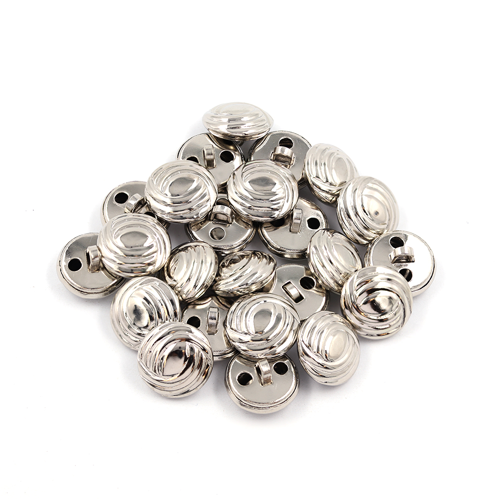 Product: Sullivans 15mm Round Metal Shank Button With Swooping Pattern Around Eye - Silver - 24 In A Tube