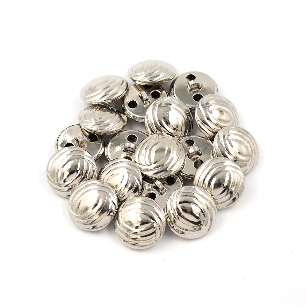 Product: Sullivans 18mm Round Metal Shank Button With Swooping Pattern Around Eye - Silver - 20 In A Tube
