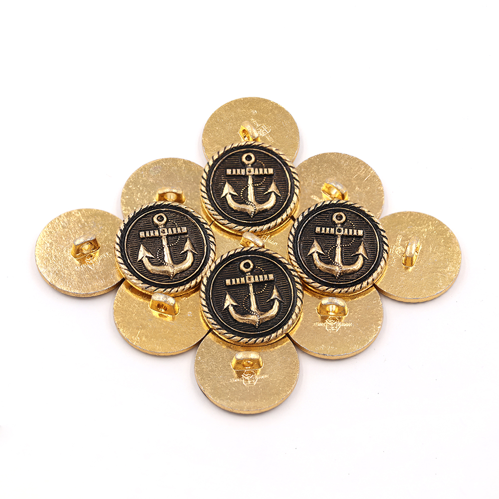 Sullivans 21mm Round Metal Shank Button With Anchor - Black/gold - 21 In A Tube