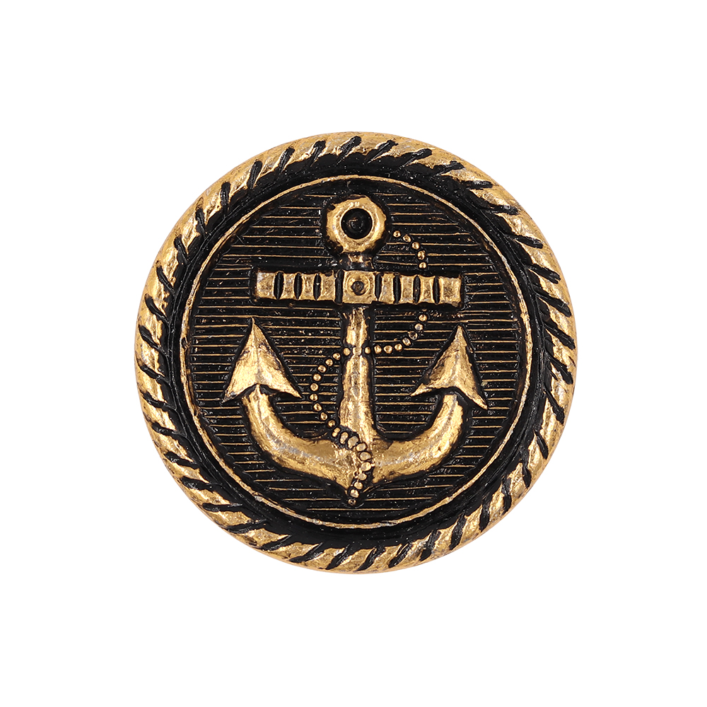 Product: Sullivans 21mm Round Metal Shank Button With Anchor - Black/gold - 21 In A Tube