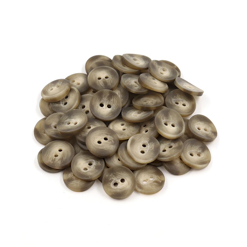 • 23212 Sullivans 15mm Round Clear Plastic Button 2 Hole Amber With Brown Strokes - Tan - 40 In A Tube