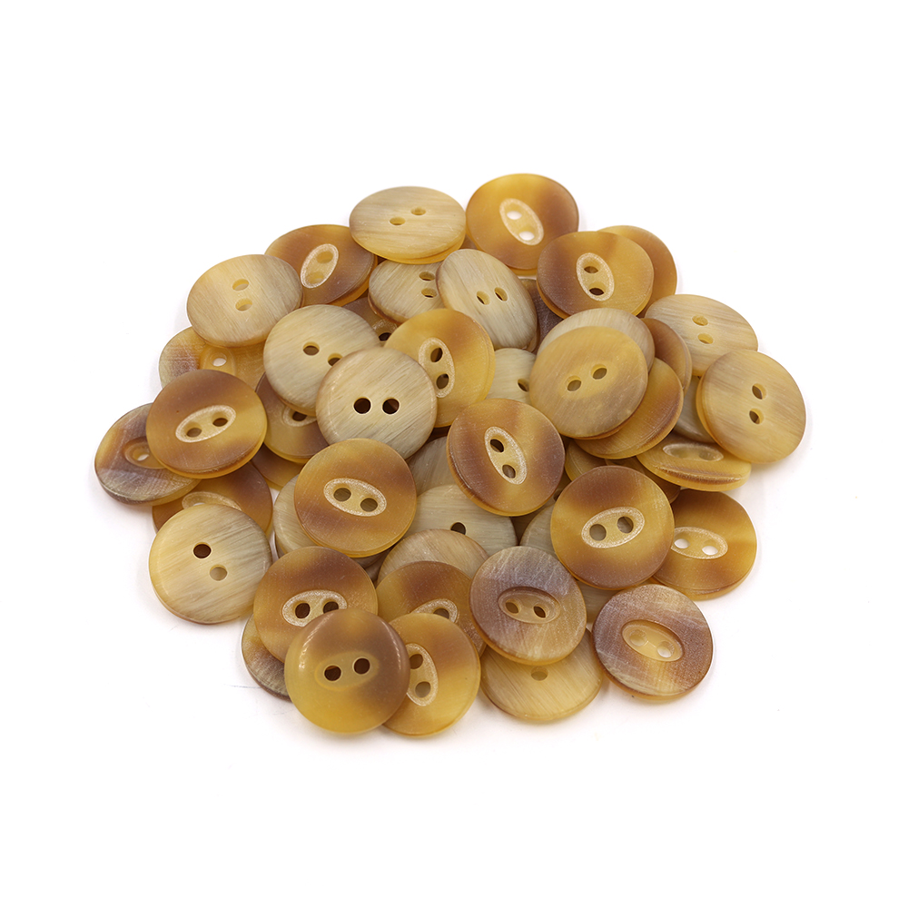 Sullivans 15mm Round Plastic Button With Two Holes - Raised Edges - Tan Two Tone - 57 In A Tube