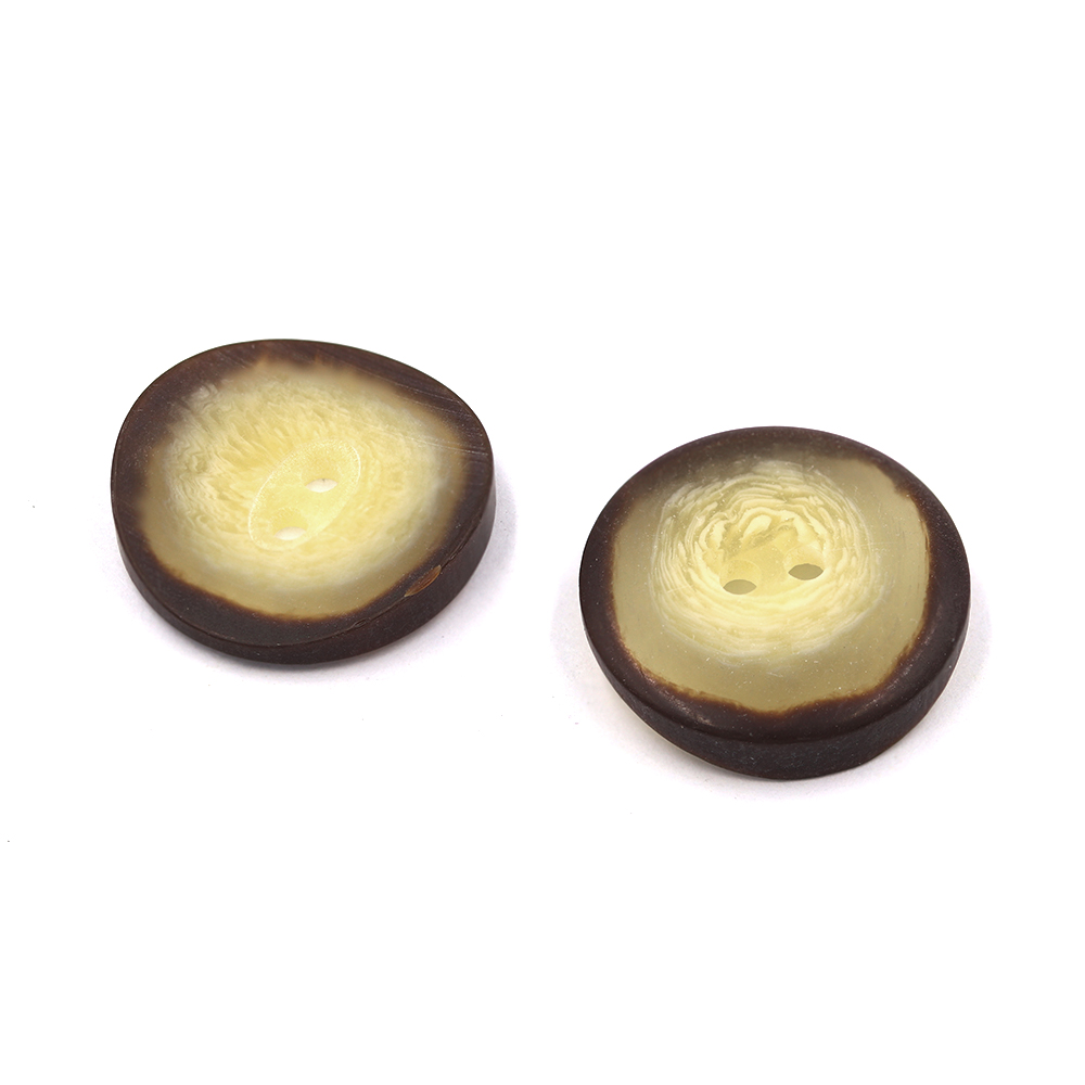 Sullivans 20mm Round Plastic Button With Two Holes - Raised Edges - Cream With Brown Rim - 22 In A