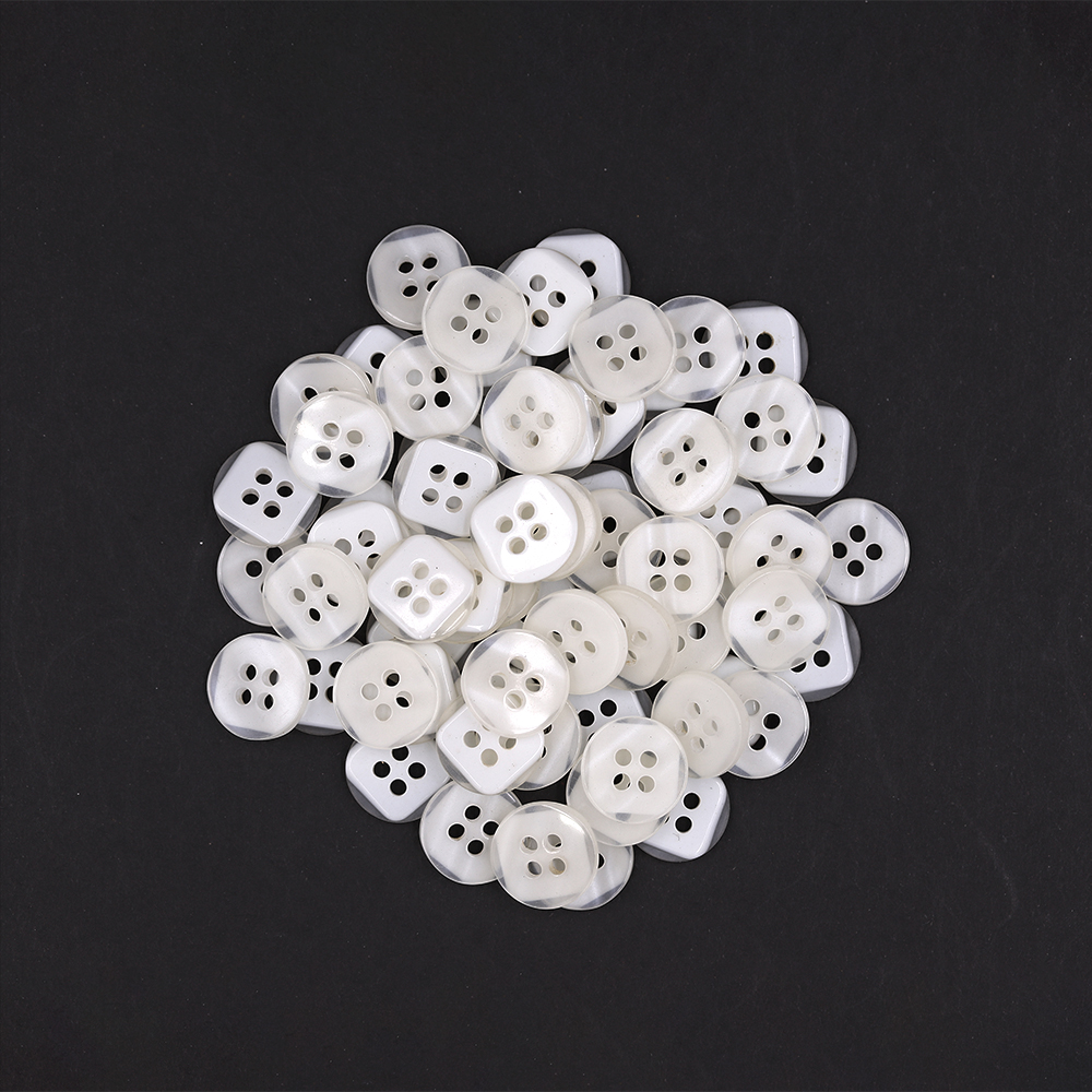 Product: Sullivans 12mm Round Plastic Button 4 Hole - Clear With Frosted White Square Insert - 75 In A Tube