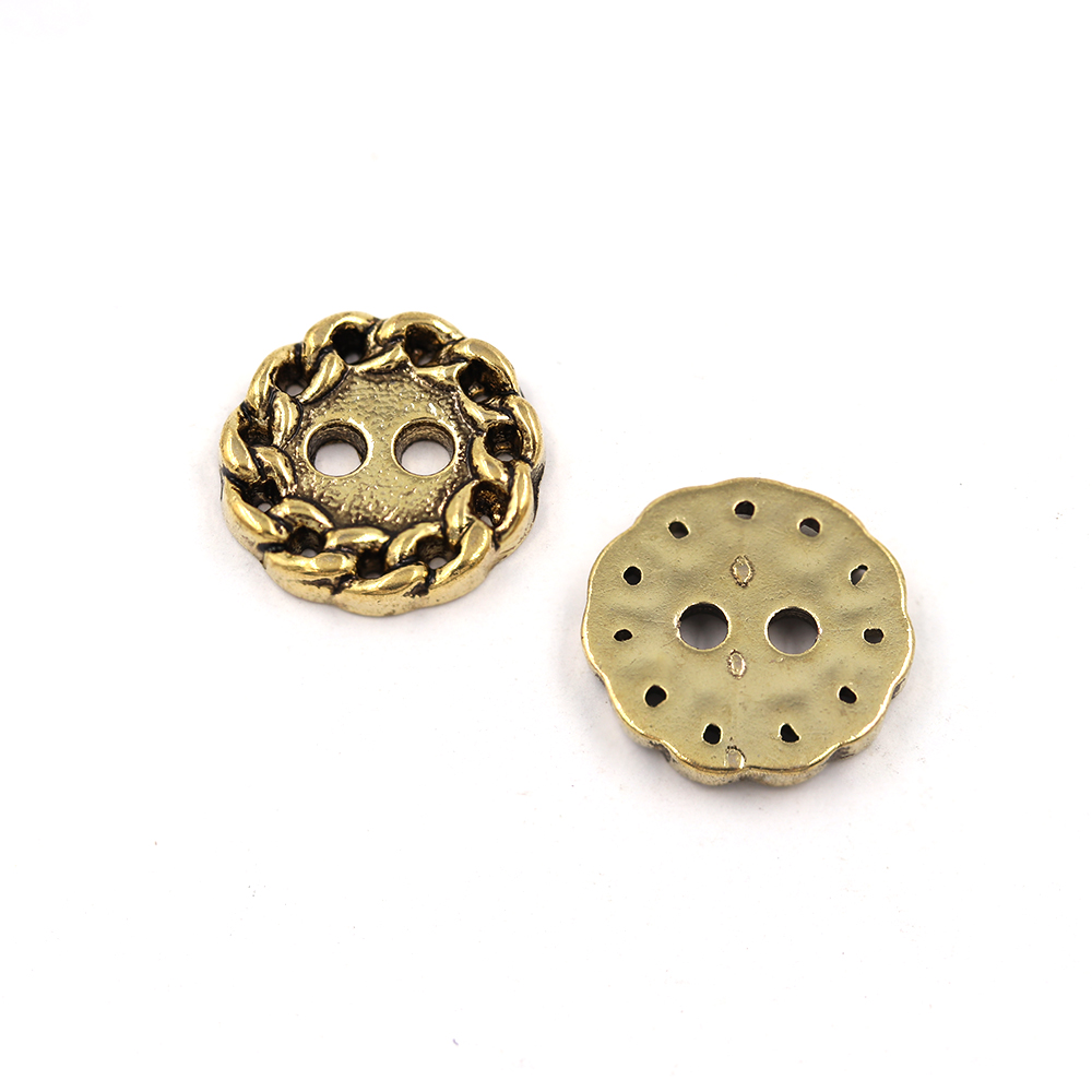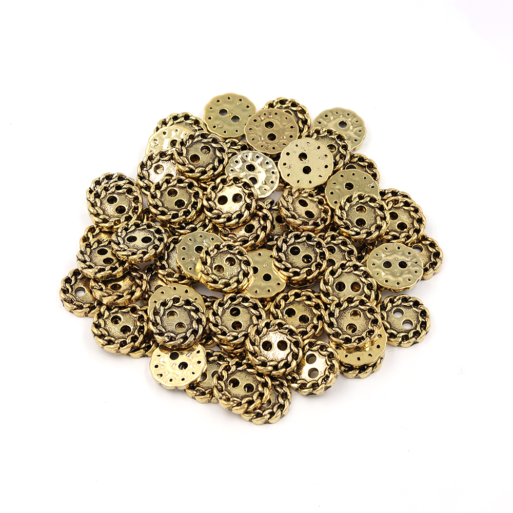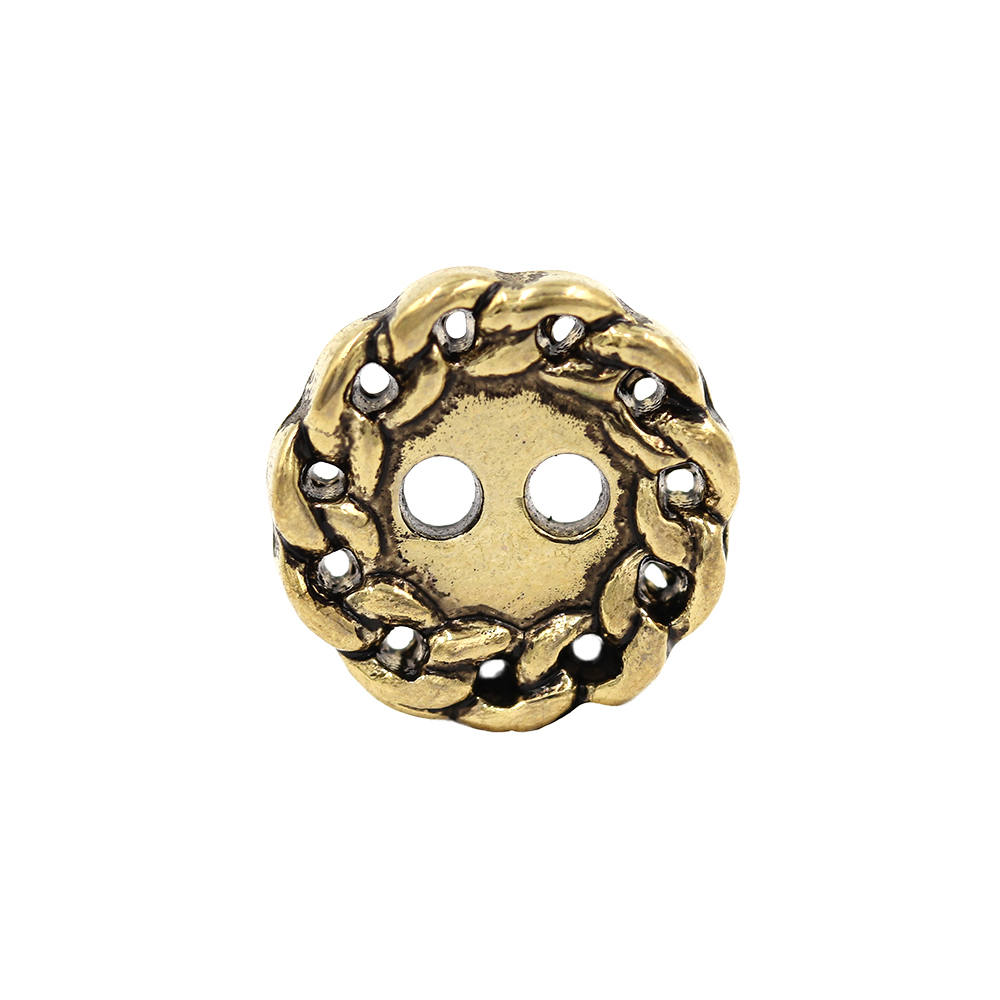 Sullivans 12mm Round Plastic Button 2 Hole - Gold With Chain Loop Border - 72 In A Tube