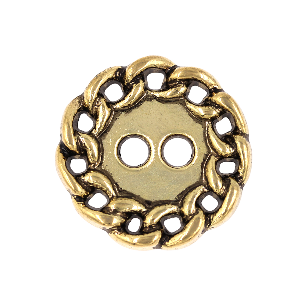 Sullivans 21mm Round Plastic Button 2 Hole - Gold With Chain Loop Border - 46 In A Tube